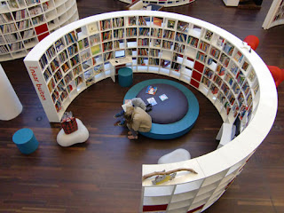 інтер'єрі. Бібліотека створена за типом книжкового супермаркету. Нескінченні